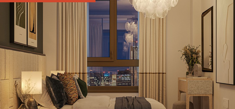 Located on the 25th floor, this spacious one-bedroom apartment offers a generously sized double bedroom and a private south east-facing balcony accessible from both the bedroom and living area. The dual-aspect living and dining space seamlessly connects to a sleek fitted kitchen, complete with integrated appliances and elegant Silestone worktops. Additional features include a contemporary bathroom, ample storage, and access to residents' amenities including a lounge and concierge. Part of the prestigious Skyline Collection, the total area of this home is 623 sq ft (57.9 sq m), combining modern design with practical living.
